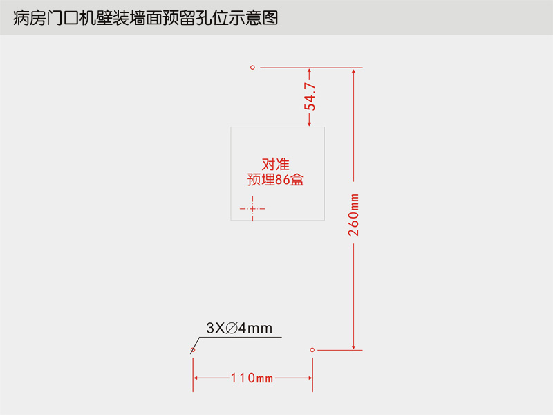 病房門口機壁裝墻面預留孔位示意圖。